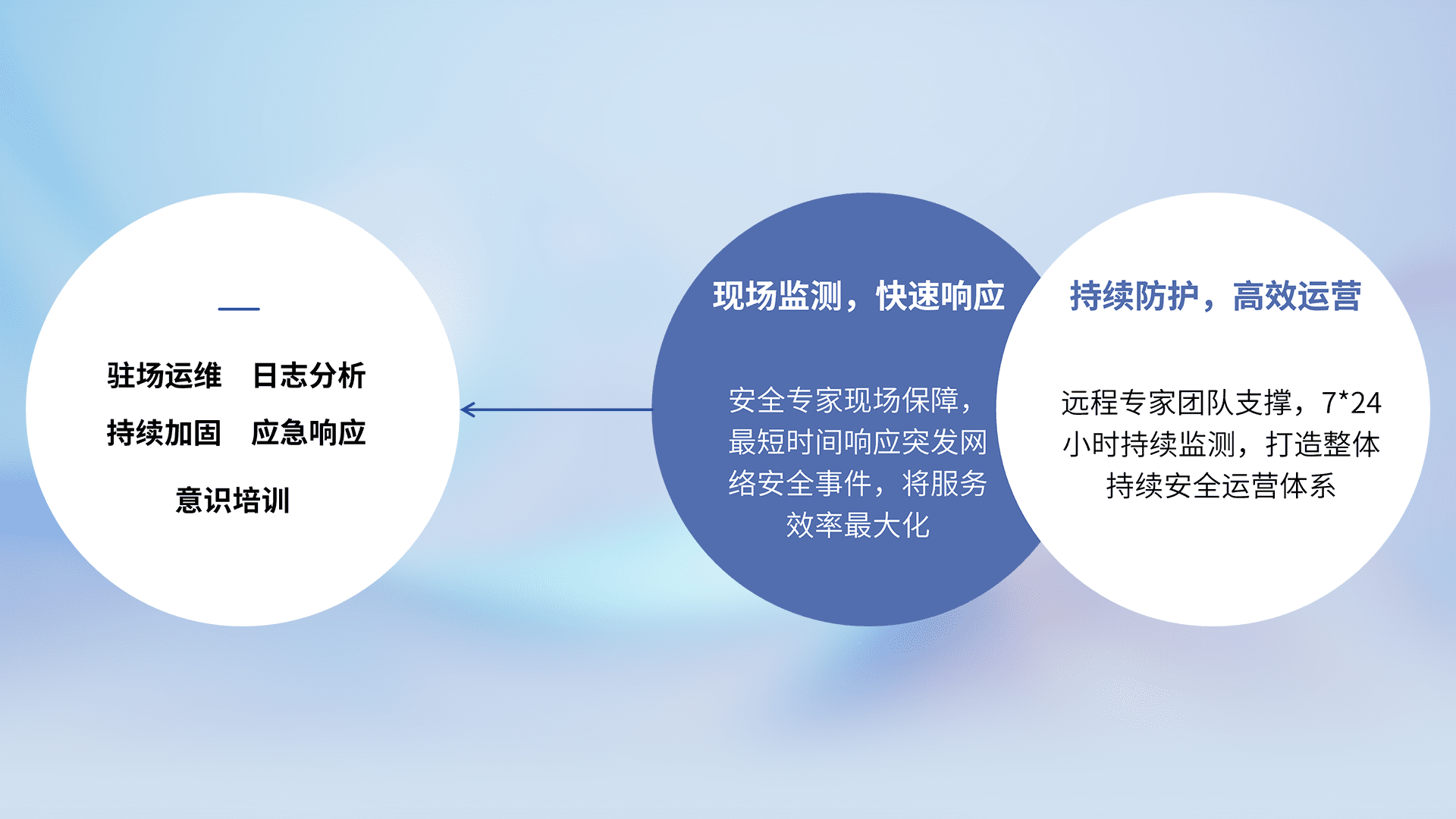 7X24小时持续监测安全事件,保持安全策略有效性,降低资产脆弱性风险,,,精准拦截黑客攻击,,,,减少被黑客利用的机会,,第一时间遏制,,,,降低损失。。。。