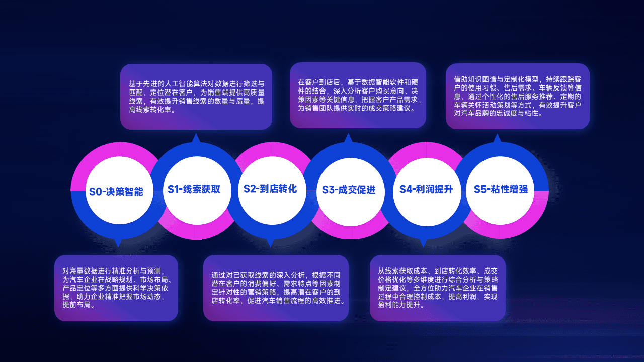 通过拓宽潜在客户来源、、、、优化线索分配并提高到店转化率,,以增强销售效率。。。同时,,,利用线索数据不断优化分析模型,,有效提升转化率,,扩大营销影响力。。。